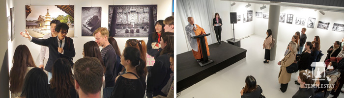 The first theme of this photo exhibition, “Practitioners on the Road,” consisted of works that captured images of practitioners silently walking the path to find their true self and practicing the lineage of cultivation passed down over 1,700 years of Korean Buddhist history, beginning with photos of the daily temple ground chanting at dawn. The second theme, “Templestay,” featured participants of various nationalities experiencing Templestay programs and the beautiful scenery of Korean mountain temples. The 3rd theme, “Temple Food,” featured works that depict baru gongyang (formal monastic meal), a centuries-old tradition, and traditional temple kitchens, as well as Ven. Jeong Kwan, a temple food master well known to people around the world through a Netflix series.